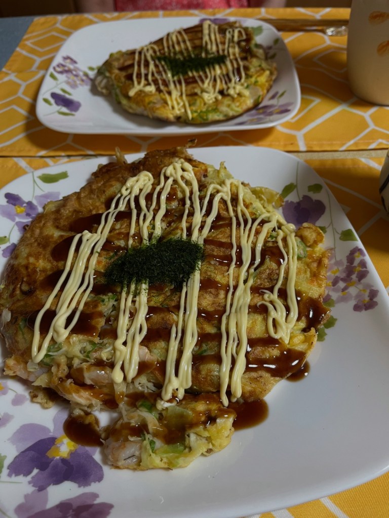 お好み焼きを夕食で作った